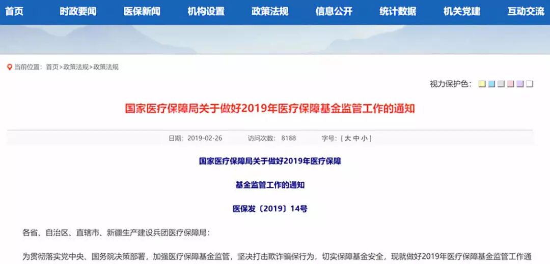 2月26日,国家医疗保障局印发《关于做好2019年医疗保障基金监管工作的通知》,在全面检查的基础上,开展打击欺诈骗保专项治理工作,切实保障基金安全。